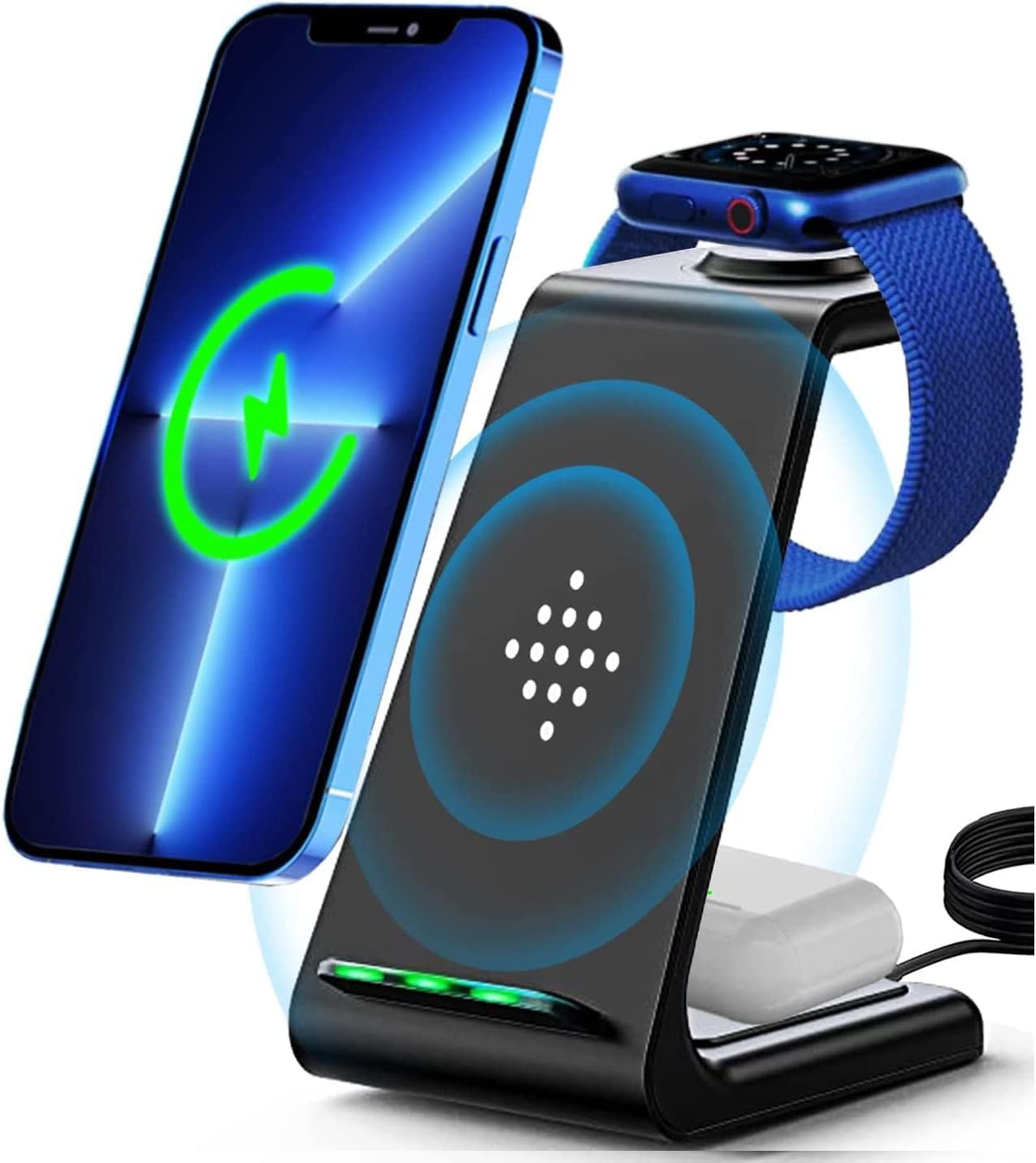 Effortlessly Power Up Your Devices with the 3 in 1 Qi-Certified Fast Wireless Charging Station.