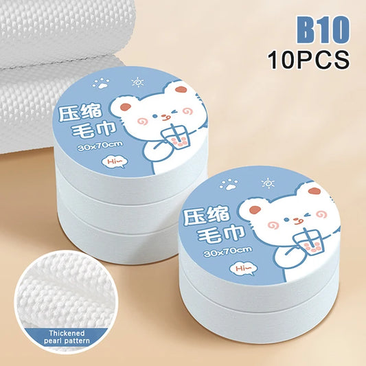 10Pcs Compressed Towel Disposable Bath Towel Enlarged Thickened Cotton Face Towel Individually Wrapped Travelling Hotel Supplies