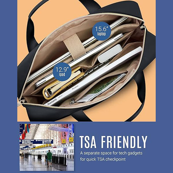 - TSA FRIENDLY- Convenient at checkpoint. A separate tech compartment with large opening design can make you quickly pass at airport security, and three pockets in main compartment also keep your tech gadgets tidy.