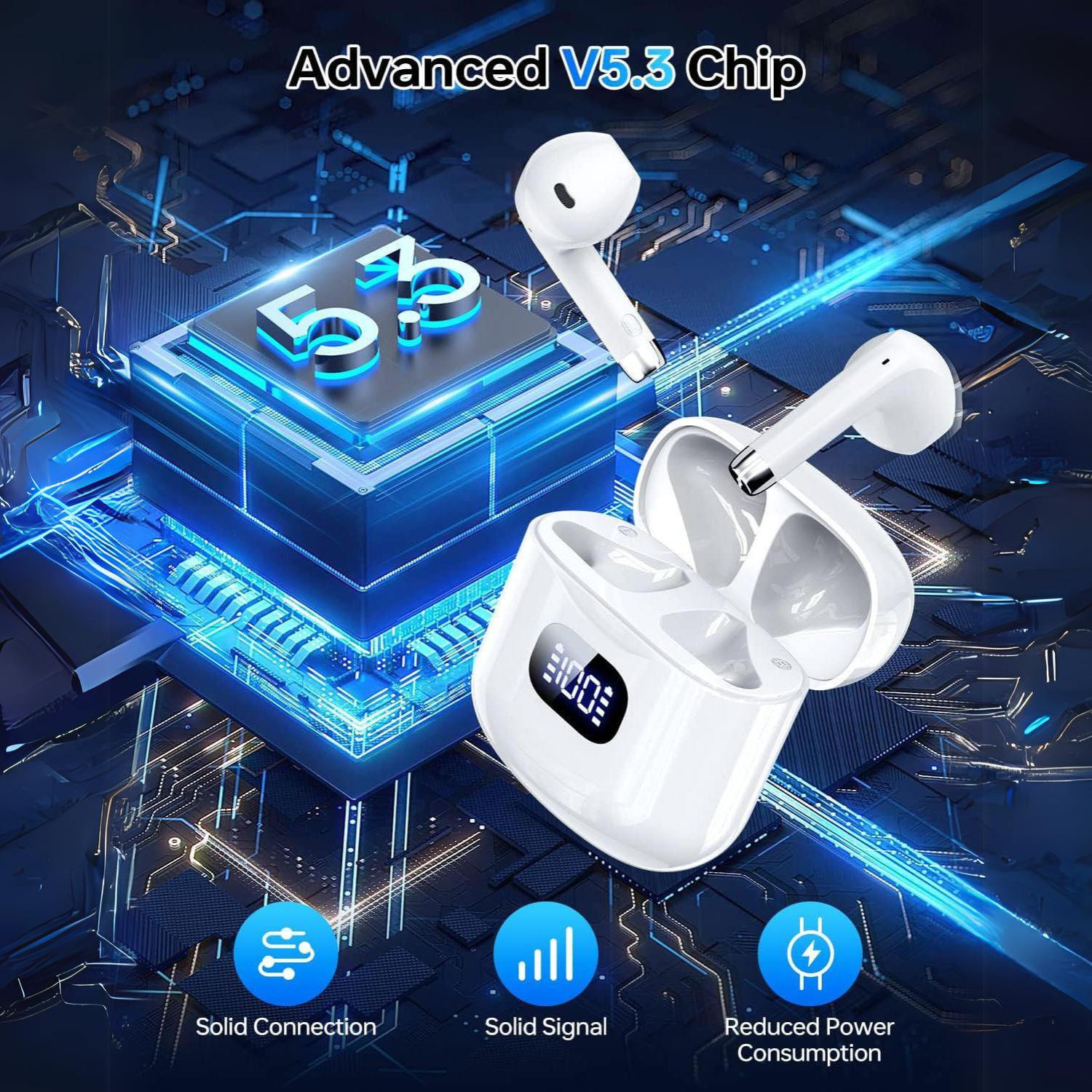 - Latest Bluetooth 5.3 One Step Auto Pairing: T08 Bluetooth Earbuds are equipped with the latest technology of Bluetooth version 5.3, which has more stable transmission, lower power consumption and offers extended range with fewer dropouts than Bluetooth 5.1, providing you with an uninterrupted calling and music experience. Once paired for the first time, simply take the two wireless earbuds out of the charging case, they will automatically pair. Compatible for iOS/Android/Windows devices.